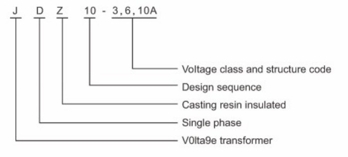J = feszültségtranszformátor, D = egyfázisú, Z = epoxigyanta öntött szigetelés, 3/6/10 = feszültségszint.