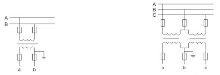 Egyfázisú vezeték kapcsolási rajza Háromfázisú vezeték kapcsolási rajza